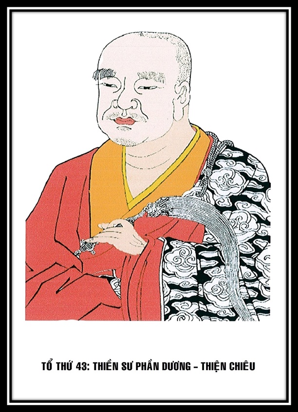 1. Thiền sư Thiện Chiêu ở viện Thái tử tại Phần dương. Thiền sư Thiện Chiêu ở viện Thái tử tại Phần dương vốn con dòng họ Du ở Thái nguyên, khí độ nhận biết trầm lắng sâu xa, ít duyên phù sức, có trí tuệ lớn, đối với tất cả các thứ văn tự chẳng do thầy chỉ dạy mà tự thông hiểu. Năm mười bốn tuổi, song thân lần lượt qua đời, Thiện Chiêu đơn chiếc khổ não, nhàm chán thế tục trần lao, nhân đó mà xuống tóc xuất gia thọ giới cụ túc, đeo mang trượng sách du phương, đến đâu cũng ít dừng ở lại, không thích tham quan, tùy cơ gõ mở, giẫm trải tham tầm Tri thức ở các phương có cả thảy bảy mươi mốt vị. Cuối cùng đến Thủ Sơn. Một ngày nọ, Thủ Sơn lên pháp tòa, Thiền sư Thiện Chiêu bước ra thưa hỏi rằng: “Bách Trượng cuốn chiếu, ý chỉ ấy như thế nào?” Ngài Thủ Sơn đáp rằng: “Áo rồng phẩy mở, toàn thể hiện”. Thiện Chiêu lại hỏi rằng: “Ý Sư đó là thế nào?” Ngài Thủ Sơn đáp: “Hành xứ của Tượng vương, tuyệt không vết tích”. Thiện Chiêu nhân lời nói ấy mà đại ngộ, bèn kính bái mà nói rằng: “Muôn xưa đầm xanh trăng giữa trời, ba phen mò lặn mới nên hay”. Có người hỏi rằng: “Ông thấy đạo lý gì mà bèn tự bằng lòng như vậy?” Thiện Chiêu đáp: “Chính là nơi ta buông xả thân mạng vậy”. Về sau, đến Hành Tương và Tương Cái, từng vì Quận thú dùng danh lợi và sức lực thỉnh mời trước sau tám lầu, song Thiện Chiêu cố nằm yên không ứng đáp. Mãi đến lúc Thủ Sơn thị tịch, các hàng Ðạo tục ở Tây hà đề cử Sa-môn Khế Thông đến nghinh thỉnh Thiện Chiêu về trú trì. Thiện Chiêu đóng cửa nằm yên, Sa-môn Khế Thông vén cửa bước vào mà trách rằng: “Phật pháp là đại sự, tỉnh nghỉ là tiểu tiết, Phong huyệt sợ ứng sấm lo tông chỉ diệt mất, may có được Tiên sư, nay Tiên sư đã xả bỏ cuộc đời, ông là người có khả năng gánh vác Ðại pháp của Ðức Như Lai, vậy mà nay là lúc nào mà muốn ngủ yên ư?” Thiện Chiêu vụt nhiên ngồi dậy nắm tay Khế Thông nói rằng: “Chẳng phải ông thì không được nghe lời nói ấy. Thú biện nghiêm là hạnh của tôi vậy”. Thế rồi nằm yên nơi một chiếc giường, suốt ba mươi năm, chân chẳng vượt qua đố cửa. Các hàng Ðạo tục đều xưng gọi là Phần Dương mà không dám gọi tên Thiện Chiêu. Lúc lên giảng đường, Thiện Chiêu bảo đại chúng rằng: “Dưới cửa Phần dương có sư tử Tây hà đang ngồi xổm giữa cửa, chỉ cần có người lại tức liền cắn giết hại. Vậy có phương tiện gì để được vào cửa Phần dương, thấy được người Phần dương? Nếu thấy được người Phần dương tức có thể cùng Phật Tổ làm thầy, không thấy được người Phần dương thì đều là đứng chết đất Hán. Vậy nay có người vào được đó ư? Chẳng phải vào lấy để khỏi bị cô phụ bình sinh. Còn không như vậy thì khách Long môn đều kỵ gặp điểm ngạch?” Chỉ chốc lát, khách Long môn một loạt đồng điểm xuống. Thiện Chiêu đứng dậy chống tích trượng bảo rằng: “Nhanh lui, nhanh lui, vô cùng trân trọng!” Sau đó lại lên giảng đường Thiện Chiêu bảo rằng: “Phàm một câu nói phải đầy đủ ba Huyền môn, mỗi một Huyền môn đủ ba yếu điểm. Thế nào là câu có đủ ba Huyền môn và ba yếu điểm? Khéo nhanh hiểu lấy tốt lành, mỗi tự tư duy, lại được ổn đáng đó chưa? Các bậc Cổ đức xưa trước hành cước, nghe một nhân duyên ngay giữa khoảng thời gian chưa thấu rõ thì ăn uống không cảm biết mùi vị, ngủ nghỉ không yên, lửa gấp thúc giục chẳng cho là việc nhỏ. Do đó, đấng Ðại Giác Lão nhân vì đại sự nhân duyên mà xuất hiện nơi đời. Nghĩ tưởng Lão nhân từ trên lại chẳng vì rảo núi chơi sông, trông xem mọi xa hoa châu phủ, mảnh áo miếng ăn đều vì chưa thông Thánh tâm, do đó rong ruổi hành cước, tìm chọn nơi sâu mầu, truyền xướng phu dương, rộng hỏi các bậc tri thức, thân gần cao đức, bởi vì nối tiếp đèn tâm chư Phật, sáng ngời các đời Tổ, sùng hưng Thánh chủng, tiếp dẫn hàng hậu có, tự lợi lợi tha. Như nay có người thương lượng ư? Có tức ra lại Ðại gia thương lượng”. Có vị Tăng hỏi: “Thế nào là câu tiếp nối dẫn dắt hàng sơ cơ?” Thiện Chiêu đáp: “Ông là vị Tăng hành ước”. Lại hỏi: “Thế nào là câu Biện nạp Tăng?” Thiện Chiêu đáp: “Mặt trời xuất hiện ở phương Tây lúc giớ Mão”. Lại hỏi: “Thế nào là câu Chánh lệnh hạnh?” Thiện Chiêu đáp: “Ngàn dặm mang lại trình mặt xưa”. Lại hỏi: “Thế nào là câu lập càn khôn”. Thiện Chiêu đáp: “Bắc câu lô châu phát triển giống gạo canh, người ăn không sân cũng không mừng”. Thiện Chiêu mới nói rằng: “Ðem bốn chuyển ngữ này chiêm nghiệm nạp Tăng trong thiên hạ, mới thấy người từ khi xuất hiện trở lại nghiệm được trọn vậy”. Lại hỏi rằng: “Thế nào là nơi người học dốc hết sức lực?” Thiện Chiêu đáp: “Gia châu đánh voi lớn”. Lại hỏi: “Thế n
