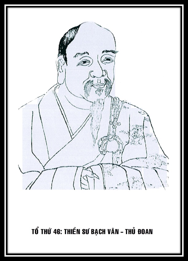 1. Thiền sư Thủ Ðoan ở Bạch vân. Thiền sư Thủ Ðoan ở Bạch vân tại Thư châu vốn người dòng họ Cát ở Hành dương. Thuở bé thơ, Sư chuyên việc bút mực, đến tuổi 20 Sư nương theo Sơn Chủ Úc ở Trà lăng mà xuất gia, sang dự tham nơi Thiền sư Hội ở Dương kỳ. Một ngày nọ bỗng nhiên Thiền sư Hội hỏi: “người thầy của ông thọ học là ai?” Sư đáp: “Hoà thượng Úc ở Trà lăng”. Thiền sư Hội bảo: “Ta nghe Hòa thượng ấy qua cầu gặp phải té ngã mà có sự tỉnh ngộ, làm kệ rất kỳ đặc, vậy ông có nhớ chăng?” Sư bèn tụng rằng: “Ta có một hạt châu sáng, bấy lâu bùi mờ khuất lấp, sáng nay bụi sạch tỏa ngời, chiếu khắp sơn hà muôn đóa”. Thiền sư cười mà vội đứng dậy. Sư ngạc nhiên trọn đêm chẳng ngủ vừa tờ mờ sáng vào thưa hỏi đó. Mãi đến cuối năm, Thiền sư Hội bảo: “Ông thấy làm ngày đánh nhau cầu mát chăng?” Sư đáp: “Thấy”. Thiền sư Hội bảo: “Một bọn ông chẳng kịp bằng cừ”. Sư lại kinh ngạc, hỏi: “Ý còn ông lại sợ người cười”. Sư bèn đại ngộ, theo hầu khăn áo qua thời gian lâu rồi giả từ đến Lô phụ. Thiền sư Một ở Viên thông được đề cử ở Thừa Thiên, tiếng tăm vang vọng rất lắm, Sư lại lánh ẩn Viên thông, tiếp chuyển đời đến ở Pháp hoa, Long môn, Hưng hóa, Hải hội. Những nơi Sư đến, đại chúng đều nhóm tụ như mây. Có vị Tăng hỏi: “Thế nào là Phật?” Sư đáp: “Vạc sôi không nơi lạnh”. Lại hỏi: “Thế nào là đại ý của Phật pháp?” Sư đáp: “Ðáy nước đặt hồ lô”. Lại hỏi: “Thế nào là đại ý của Tổ sư Ðạt Ma từ Tây vức lại?” Sư đáp: “Quạ bay thỏ chạy”. Lại hỏi: “Chẳng cầu các Thánh, chẳng động tánh linh của chính mình là việc phần trên của Nạp Tăng. Vậy thế nào việc phần trên của Nạp Tăng?” Sư đáp: “Chết nước chẳng cất giấu nơi cung rồng”. Lại hỏi: “Tiệu lúc nào đi thì thế nào?” Sư đáp: “Lừa dối giết ông”. Ðến thê hiền, có lúc lên giảng đường, Sư bảo: “Thừa thiên tự mở nhà sau bên an bài chút dây leo, đến Sơn nam, Ðông cát, Tây cát tức bị Quy tông, Khai tiên, vạn sam đánh chết lớp xong vậy. Ngày nay đến trong hội Tam hạp, rất tợ đến vẫy thầy thuốc trị bệnh, cuối cùng buộc tay chân chẳng rành. Trong mong đại chúng chớ lấy làm quái lạ, cúi mong, trân trọng”. Lại có lúc lên giảng đường, Sư bảo: “Chim có hai cánh, bay chẳng kể xa gần, đường ra một ngăn cách đi không trước sau. các nhà Nạp Tăng thông thường nắm thìa vất đủa, cùng đường biết có, kịp đến lúc lên tới trên non vì sao liền thở ấp chẳng thấy đạo nhân không tinh lường xa hẳn có lo buồn gần”. Lại có lúc Sư chỉ dạy đại chúng rằng: “Phật đất bùn không thể độ nước, Phật gỗ không thể độ lửa, Phật vàng không thể độ lò, Phật thật ngồi ở bên trong đại chúng. Triệu Châu Lão Tử có 12 tể, cốt đầu có tám vạn bốn ngàn lỗ chân lông, một lúc rút đến trong lòng các người đã xong, ngày nay trên đường Viên thông thấy bất bình vì người xưa buông hợi thở”. Xong, Sư vỗ xuống thiền sàn một cái và tiếp bảo: “Phải nên biết núi biển đều thuộc về minh chúa, chưa tin đất trời vùi lấp người tốt lành”. Lại có lúc Sư chỉ dạy đại chúng: “Thân Phật sung đầy khắp pháp giới, hiện khắp tất cả trước quần sinh, tùy duyên cảm hiện cùng khắp cả, mà thường ở tòa Bồ đề này đại chúng, làm sao sống nói cái đạo lý tùy duyên cảm hiện, chỉ ở trong khoảng khảy móng tay mà đối với căn cớ các quần sinh khắp đại địa đức đồng một lúc được cảm ứng khắp cùng, mà chưa từng động đến một đầu mãy lông, bèn tạm gọi là tùy duyên cảm hiện mà thường ở nơi tòa đây. Cỉ như sơn Tăng đây nhận sự thỉnh mời của Pháp hoa, lần lượt cùng giả biệt với đại chúng, bỏ khai đườngrong huyện tư mới về viện đi, hãy nói có lìa khỏi toà đây không? Nếu nói lìa thì thế đế lưu bố, nếu nói chẳng thì làm sao thấy được cái việc chẳng lìa? Chẳng là vô biên cảnh giới cõi nước tự nó chẳng cách nơi đầu mãy lông, xưa nay 10 đời trước sau chẳng lìa nơi đương niệm ư? Lại chẳng là lúc tất cả đều vô tâm tự khắp cùng ư? Nếu nghĩ gì chánh là nâng gậy đánh mặt nguyệt, đến trong đó phải tỏ ngộ mới được, sau khi ngộ lại phải gặp người mới được, các ông nói đã ngộ rồi bèn nghỉ, lại sao hẳn phải gặp người? Nếu ngộ rồi gặp người, đúng là lúc buông tay phương tiện, mỗi mỗi đều có đường xuất thân, chẳng chỉ mù lòa tức mắt người học. Nếu chỉ ngộ được đầu đáy càn la bặc, chẳng chỉ mù lòa tức mắt người học, mà gần tự mình động trước tự xúc phạm bén nhọn thì tổn hại tay. Các ông xem Tiên sư Dương Kỳ Ta (Thiền sư Hội) hỏi đạo ở Sư Ông Từ Minh là: “Nơi u tối chim ngâm nỉ non, lúc giả từ mây vào trong lắm ngọn núi thì thế nào?” Từ Minh đáp: “Ta đi trong cỏ hoang, ông lại vào thôn 