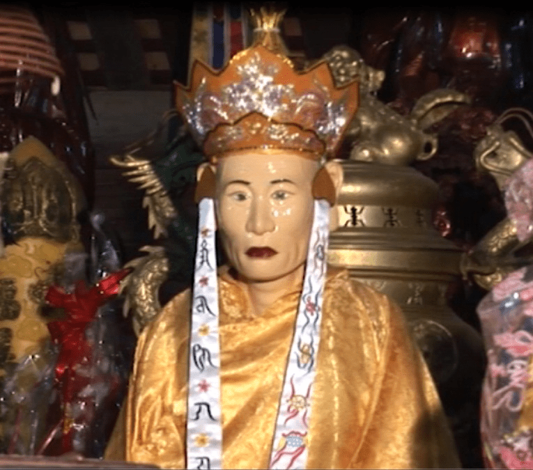 - Tượng vua Lý Thần Tông bằng gỗ.